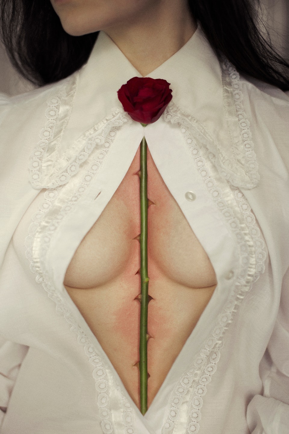 Despite living in a modern society where education and professional development are widely accessible, I sometimes feel reduced to the role of a mere exhibit; a still doll. My conceptual work illustrates the painful frustration of being forced into a submissive and ornamental role."