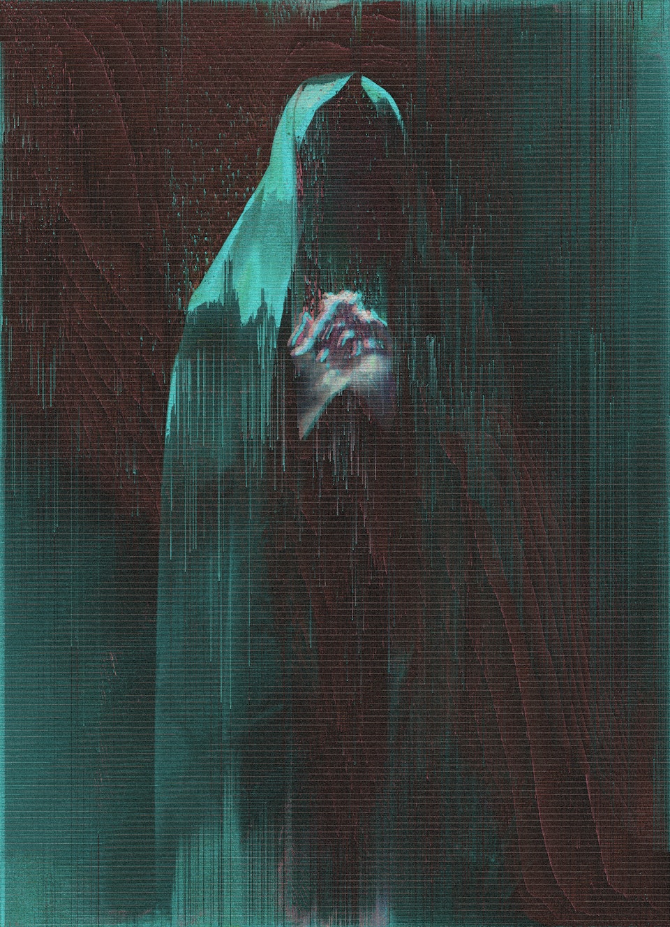 "Jlitch uses abstract/surreal photo-manipulation to convey the distortion of living in a digital setting. The more technology progresses the more we live in a wireless post-cloud world. But what happens to us when we've uploaded our entire lives into a digital cloud and the cloud comes down?