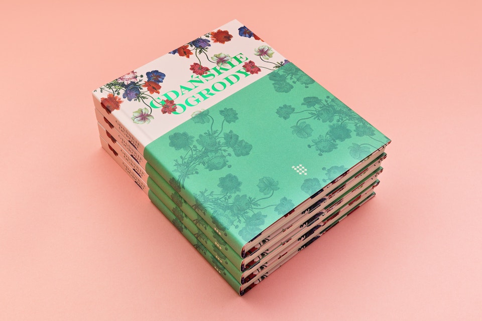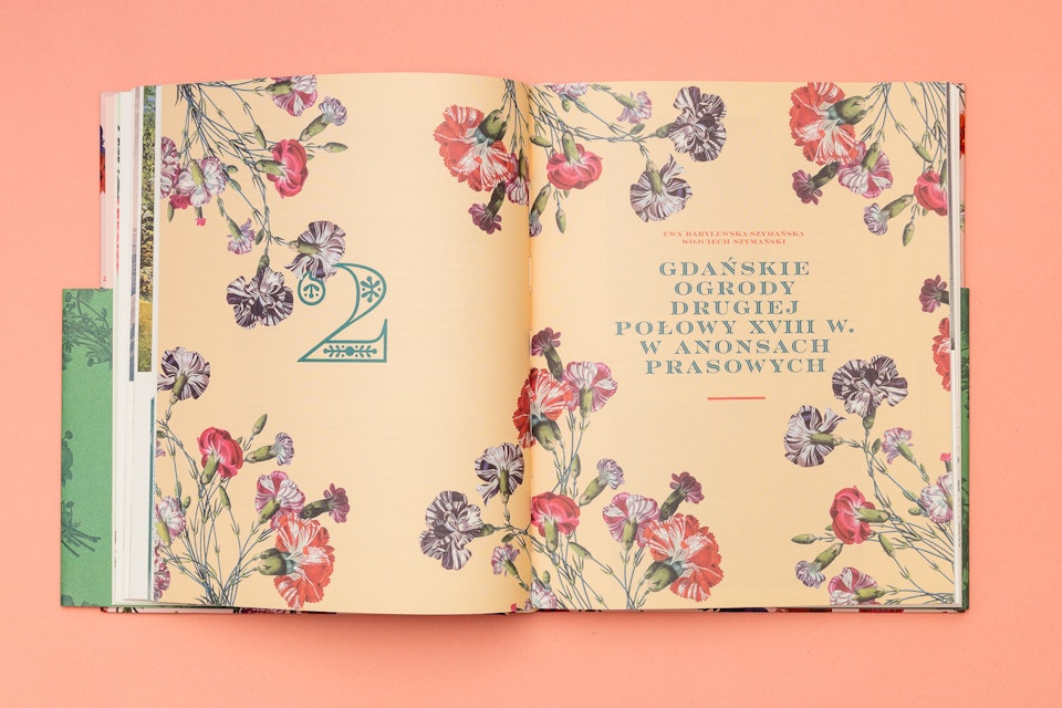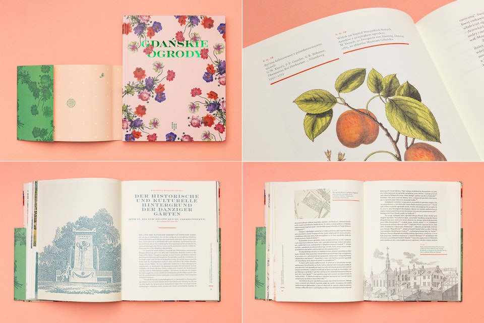 The accompanying catalog gathers these materials together with historical articles. The design of the catalog reflects the aesthetics of historical gardens: the layout, typography and colors all reference it. We used fragments of old etchings as illustrations. On the cover we used hotstamping and a half-dust jacket with small etchings hidden inside."
