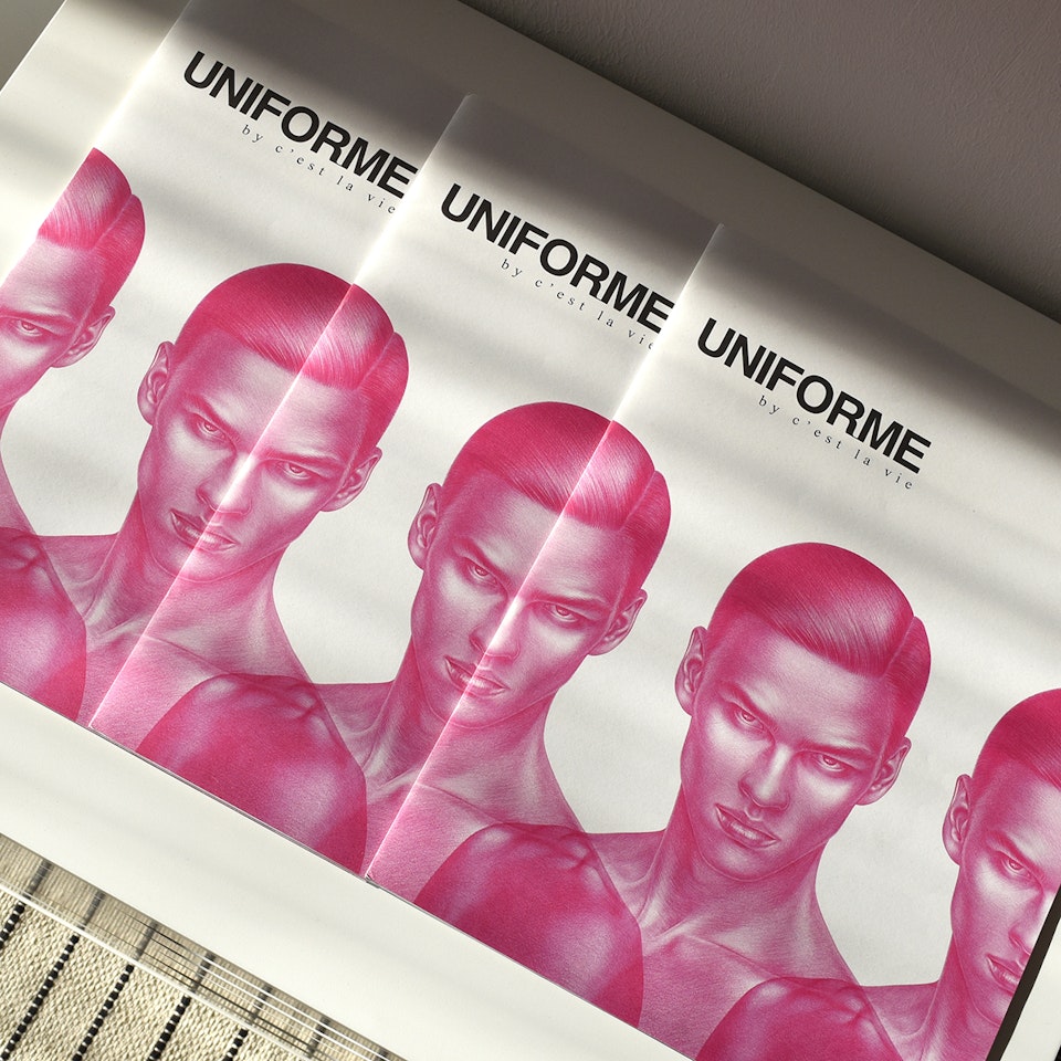 "A cover illustration for a newspaper published by a Paris based creative agency C’est La Vie. The image was a response to their January theme of “Uniform”. I chose to approach this by exploring uniformity in bodies, faces and societal norms, rather than focusing on it in the clothing or fashion sense of the word."
